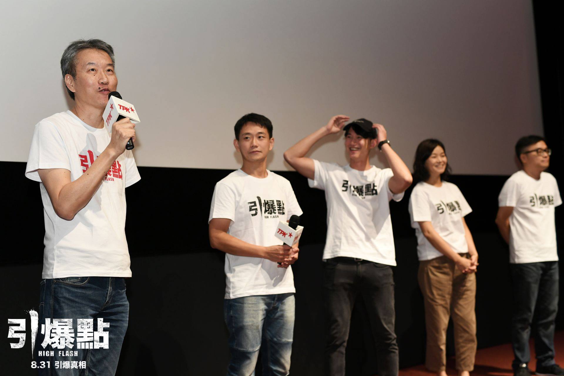 映後的舞台問候監製編劇導演主角們一字排開,誠意十足,天來基金會執行長也親自到場觀影,炎熱的夏天夜晚大家耐心排隊與親和力十足的製作團隊大合照,希望大家與《引爆點》渡過了一個愉快的夜晚,你們是最好的觀眾!