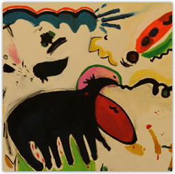 「浮游、碎片組曲」和「腕豆、龍捲風、MAP三部曲」。她任由想像的熱情往多向遊走,畫面以留白為居多,穿插著奇形怪狀的碎片和點綴的顏色,任意的發展組成,營造在畫面上的效果呈現出輕盈、愉悅、奇幻的氛圍。