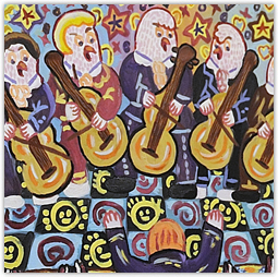 我畫了漂亮的大大舞台,有許多白色羽毛的公雞正在拉大提琴!台下很安靜,有許多觀察正在欣賞這大提琴完美的演出。