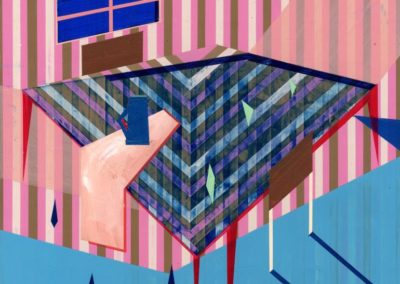 本系列創作的開展,來自於閱讀《到處存在的場所 到處不存在的我》這本小說的時候。書中描寫了處於各個場所的人,被分割、生活在其中,由這些場所中所生的情緒與其場域產生了流動,此種在空間中的流動情感,我希望能透過繪畫的形式,表達對生活空間的依戀與想像。