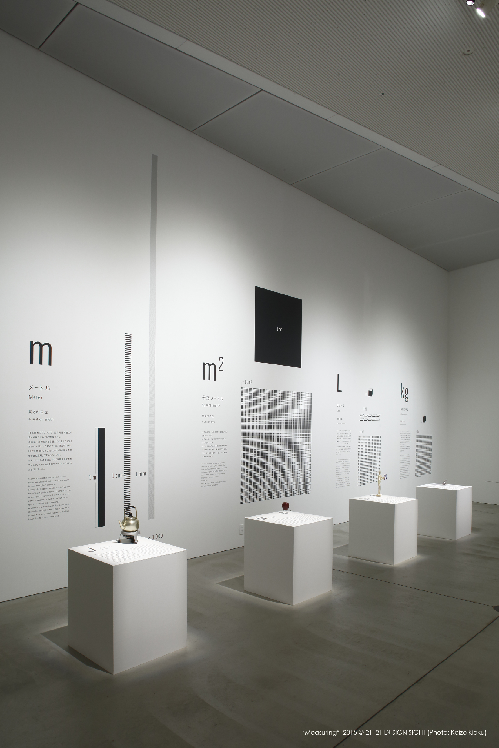 去年2月,21_21 DESIGN SIGHT以「單位」為主題,策劃了「單位展:This much, That much, How much?」,在東京3個月的展期創下11萬人次的觀展熱潮,話題也延燒到台灣的設計師圈以及相關科系校園,近30位的藝術家與設計師,利用設計美學、工藝文化、視覺效果、數位科技,以豐富創意表現方式,讓觀展者通過視覺、觸覺、互動,親身參與於“單位”中。單位是一切計算、衡量的源頭,弄不清楚的人可能比較多,「1顆蘋果有多大?」用手一比,每個人的比的都不一樣,那「1公斤到底是多重?」、「1公升的水倒出來有多少?」、「10秒到底有多久?」每個人的10秒都一樣久的話,怎麼會老是有人說3分鐘就好10分鐘後才出現? 我們的日常生活中充滿了這些「單位」的數字,但是有多少人能夠具體說出來這麼多?那麼多?到底是多少?